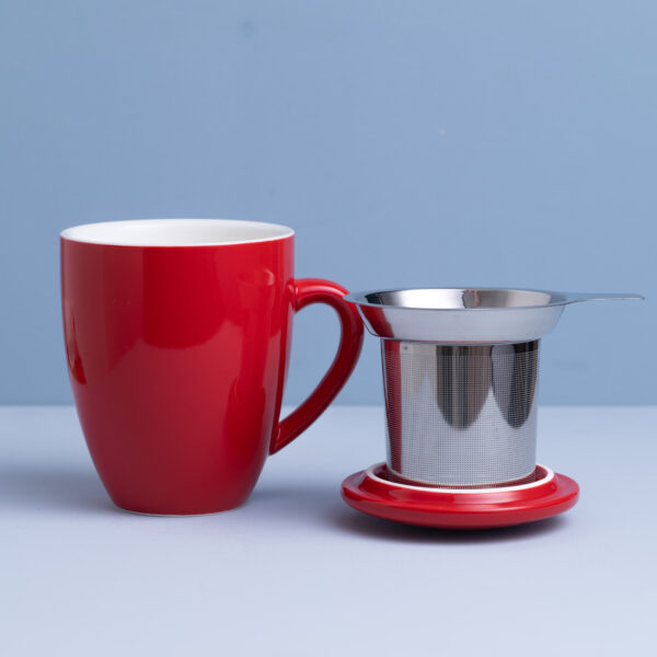 Ceramic Teacup with Infuser & Lid (350ml) – Red